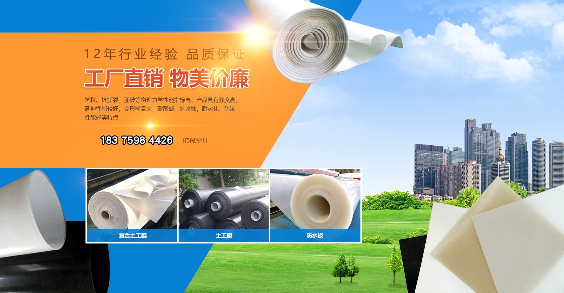 復(fù)合土工膜分為一布一膜和兩布一膜,寬幅4-6m,重量為200—1500g/平方米,抗拉、抗撕裂、頂破等物理力學(xué)性能指標高,產(chǎn)品具有強度高,延伸性能較好,變形模量大,耐酸堿、抗腐蝕,耐老化,防滲性能好等特點。能滿足水利、市政、建筑、交通,地鐵、隧道、工程建設(shè)中的防滲、隔離、補強、防裂加固等土木工程需要。常用于堤壩、排水溝渠的防滲處理,以及廢料場的防污處理。